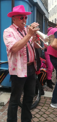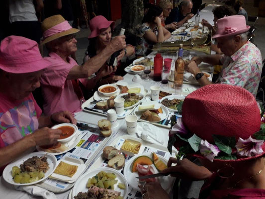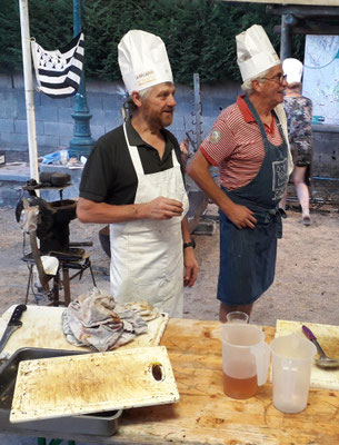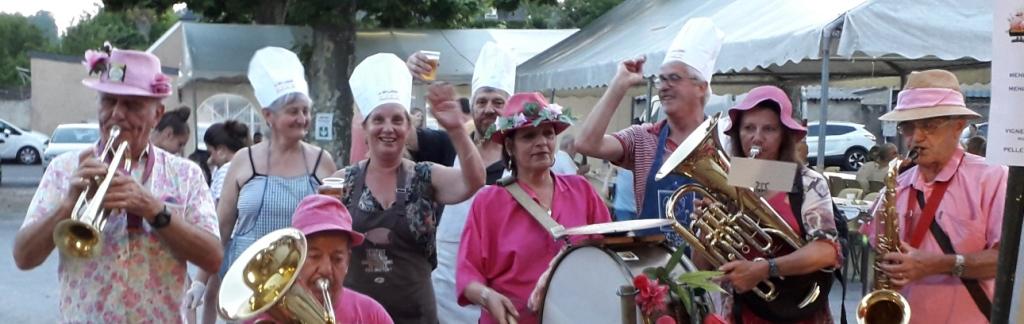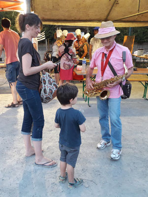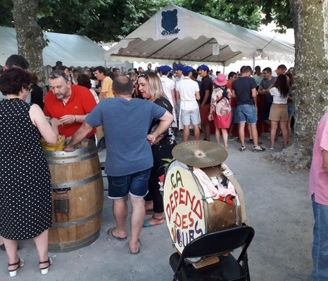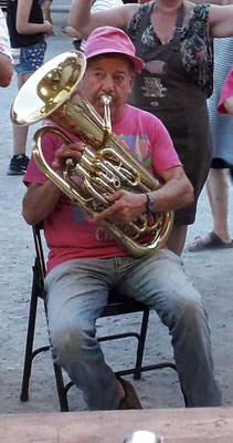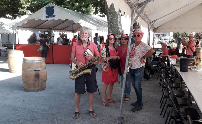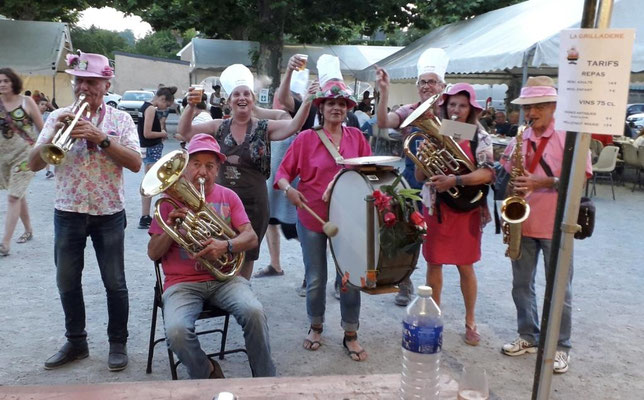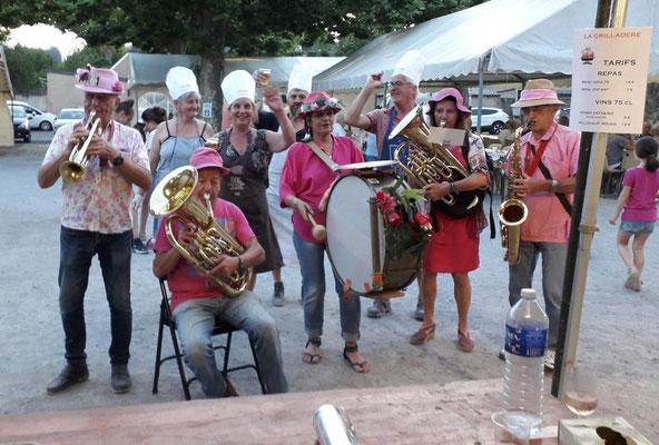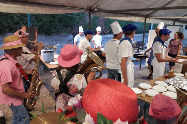 Nous étions 3 groupes musicaux : une banda, des chanteurs bigourdans et la Fanfarmonie à se passer le relais autour de la buvette avant de se positionner chacun sur un spot approprié. Nous avons d'ailleurs fait le bon choix en allant jouer aux cuisines.