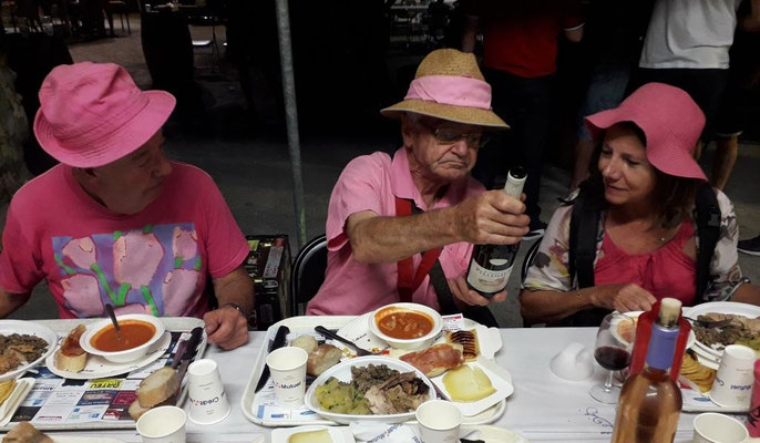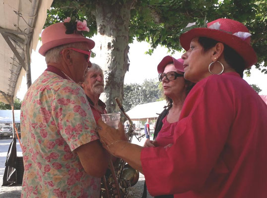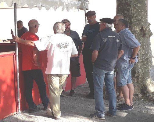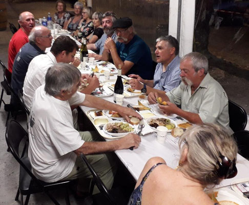 Le groupe de chanteurs près de la buvette, un pur hasard ..., et pendant le repas où nous avons pu échanger avec eux quelques interprétations musicales hors répertoire avec des égarements vers les chants de salle de garde.