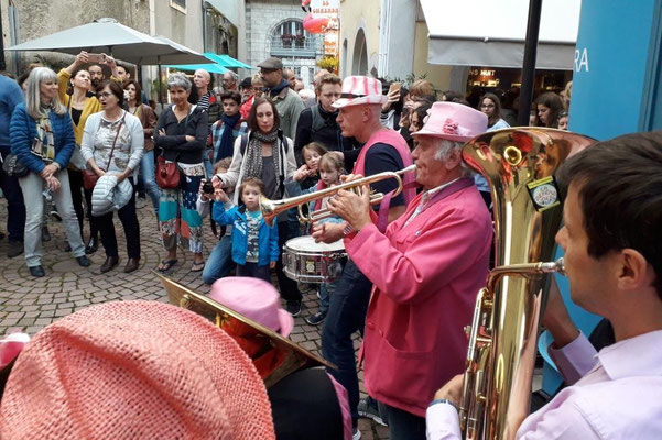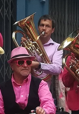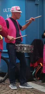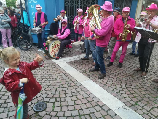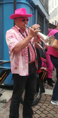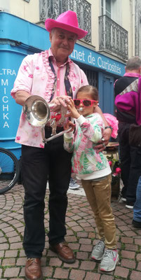 Une charmante passante, toute de rose vêtue, n'a pas eu d'autre choix que de se joindre à nous à l'insu de son plein gré. Une future trompettiste ?