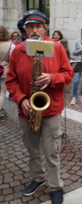 Au fil des ans, perturbés par les groupes suréquipés d'amplification électronique, nous avons finalement pu trouvé un havre de paix pour exprimer en toute quiétude notre immense talent. Certes cette quiétude a été anéantie cette année par un groupe de percussions qui passait par là et s'est incrusté; heureusement nous étions en phase finale, nous avons donc plié les instruments après 2 heures de prestation.