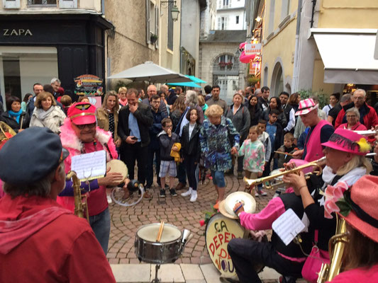 Vraiment trop facile ... dès les premières notes (mêmes approximatives ) un public nombreux se rassemble autour de la Fanfarmonie.
