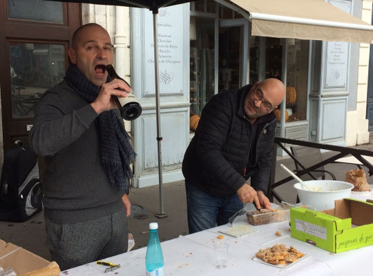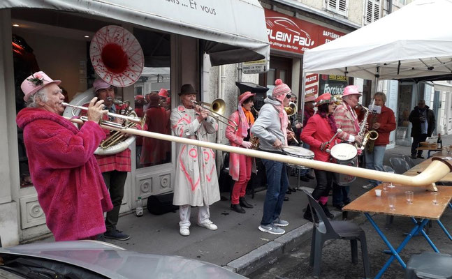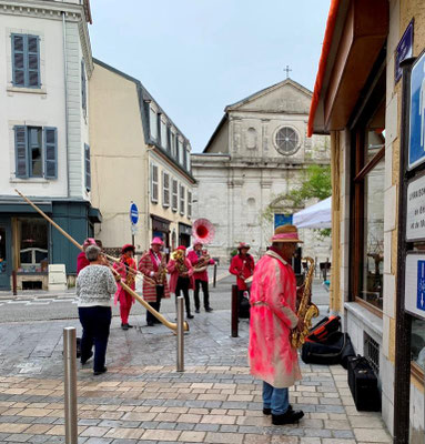 La Fanfarmonie avait déjà été sollicitée en avril 2017 pour la "ballade des gourmets" (cliquer ici). Nous avons eu le plaisir de revenir cette année devant la Maison Constanti pour cette animation, organisée par la ville de Pau, mettant en valeur les savoir-faire locaux autour du canard, du pain , du fromage et de la sélection des vins.