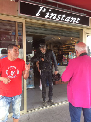 La prestation devait se dérouler de 11h à 13h dans les 2 étages de l'établissement ainsi qu'à l'extérieur proche des stands de la grande braderie annuelle. Emportés par notre élan et l'ambiance festive d'un apéro convivial des commerçants nous avons joué les prolongations jusqu'à 14h30 avant de finir autour d'un buffet et d'être priés de quitter les lieux à 15h, heure de fermeture.