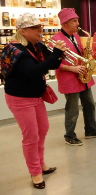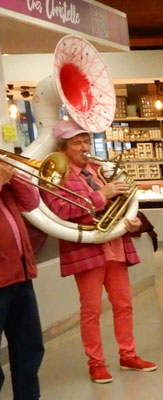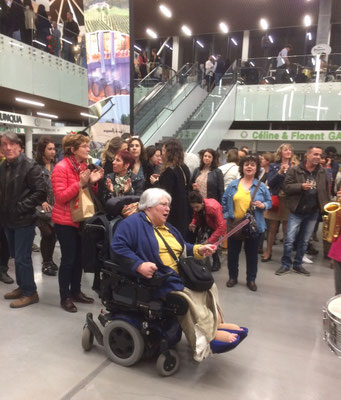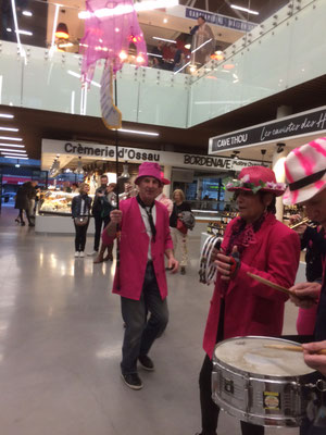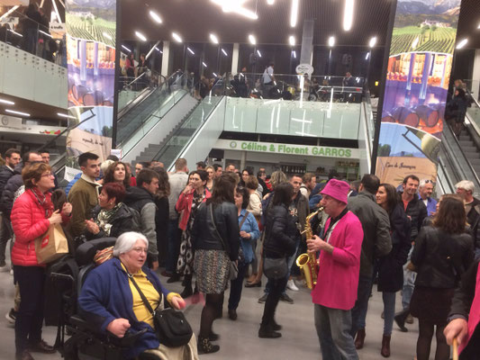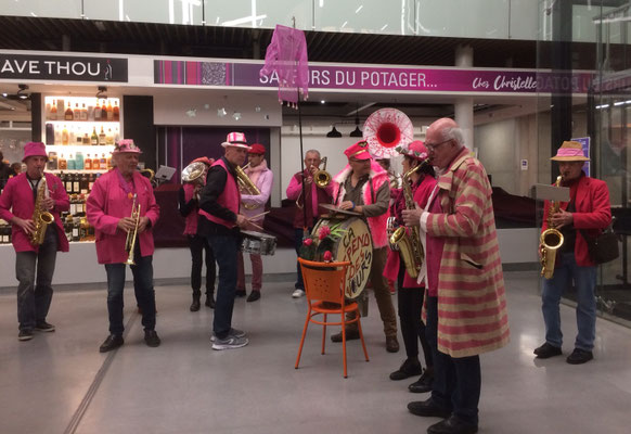 Une première pour la Fanfarmonie et le plaisir d'avoir été sélectionnés pour l'animation mensuelle en vendredi "nocturne" des halles flambant neuves. Le public s'est progressivement étoffé de 18h30 à 20h15 pendant notre intervention avec une finale en apothéose par une chenille "montante et descendante" sur les escalators du hall central. Nous avons ensuite laissé la place à un groupe électro et sa top chanteuse qui ont pu ainsi prendre le relais avec le public déjà bien chauffé.