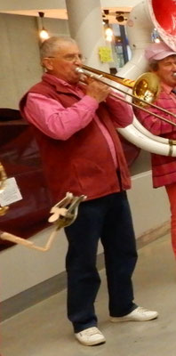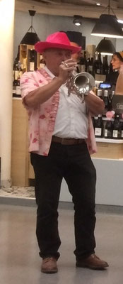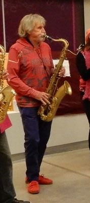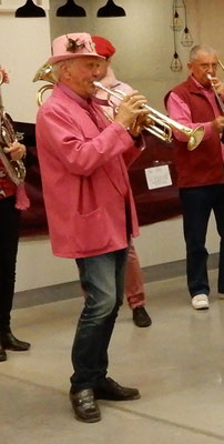Olivier s'est lancé en première ligne avec son saxo pour fêter sa première sortie avec la Fanfarmonie.