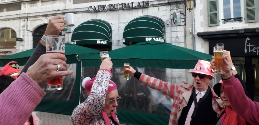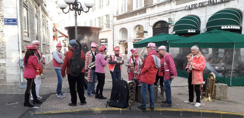 ... rue Saint Jacques/ place de la libération, devant le café du Palais, où l'on a joué entre autre un magnifique "Funiculi" connu et chanté par une charmante dame du public ...
