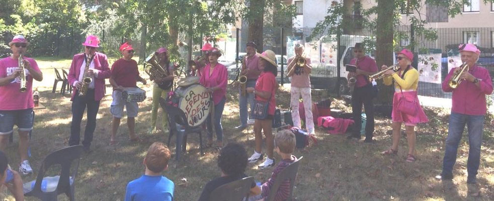 La Fanfarmonie, agréablement positionnée à l'ombre, en nombre et talents adaptés pour jouer tout y compris l'injouable