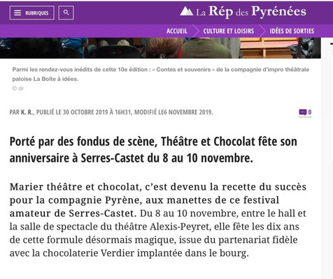 Serres Castet Alexis Peyret - apéro festival Théâtre et Chocolat - samedi soir 9 novembre 2019
