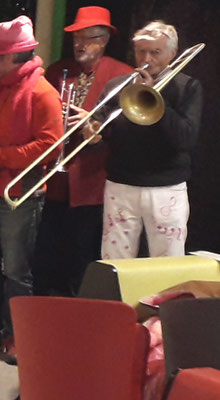 Une belle brochette de 16 fanfarmonistes venus en nombre sans doute pour se faire valoir auprès d'un public sensible à la haute qualité des arts, musique incluse ...