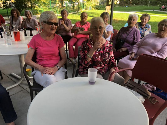 La Fanfarmonie dans le parc de la résidence avec le déroulement d'un répertoire approprié (autant pour les résidents que pour un certain nombre de fanfarmonistes)