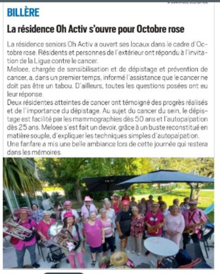 Billère résidence Oh Activ - octobre rose - jeudi 5 octobre 2023