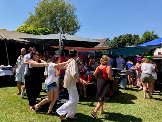 Une météo orientée canicule a été bien gérée par des équipements ombragés dans l'espace extérieur (une tente de l'armée a beaucoup servi de refuge pour la Fanfarmonie).