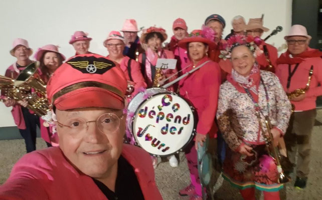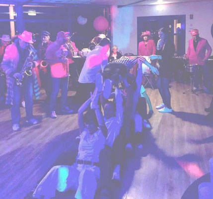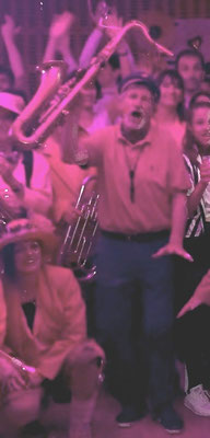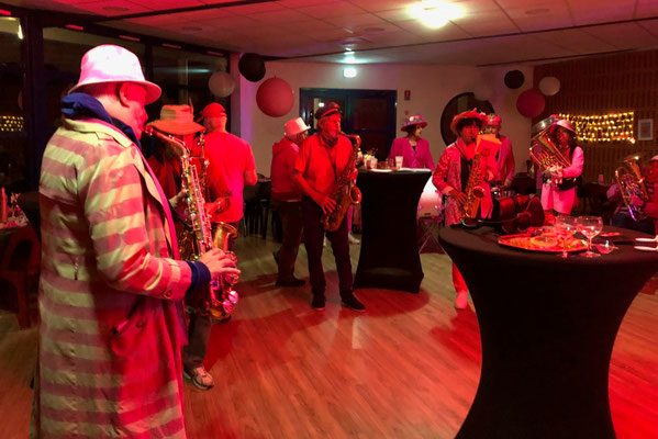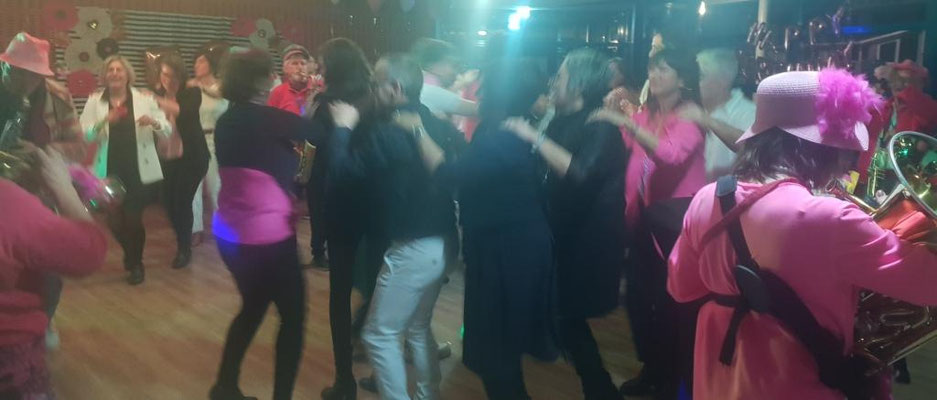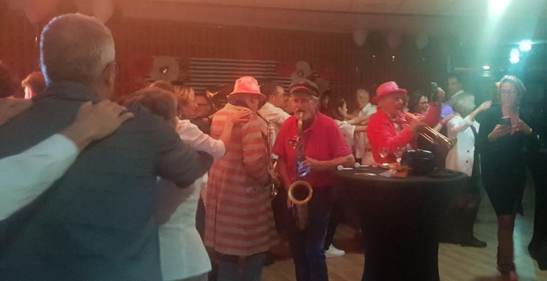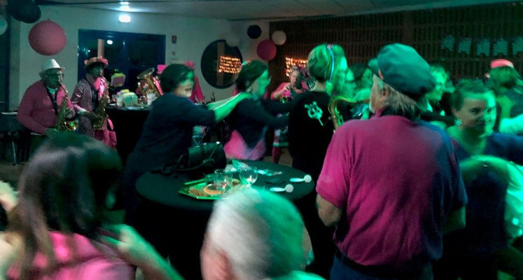 Notre répertoire varié a connu un succès facile avec les classiques du sud-ouest mais nous avons pu glisser nos inconnus dansants et parfois hors bienséance. Certains ont pu reconnaitre les paroles du carnaval de Dunkerque sur Funiculi, d'autres ont fredonné celles de la valse du 14 julllet, ... et découvrir, plus ou moins interloqués, nos exclusivités sur When The Saints admirablement lancées par Bernard, chaud bouillant au micro.