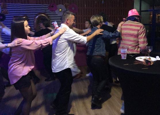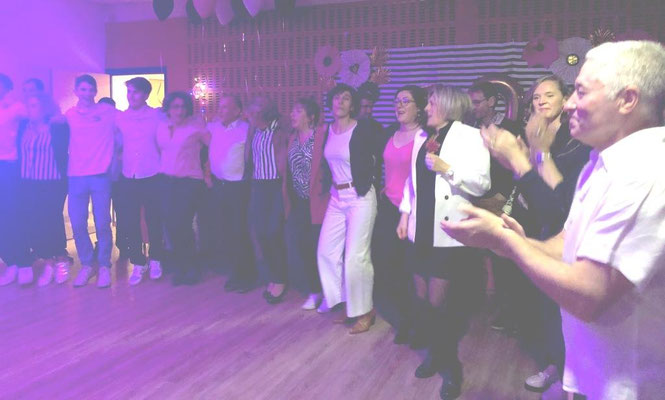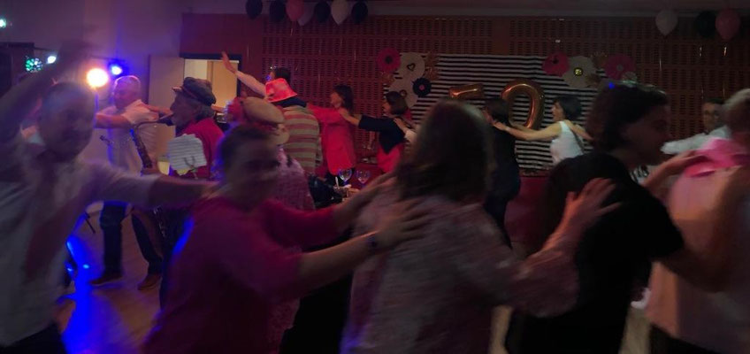 Un anniversaire comme on les aime. Ambiance, convivialité, fantaisies, public communicatif, ... et un accueil chaleureux de Céline, vedette de la soirée, qui fête ses 50 ans.