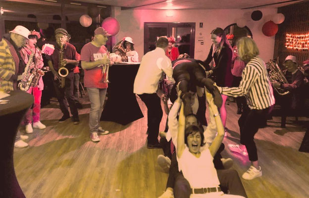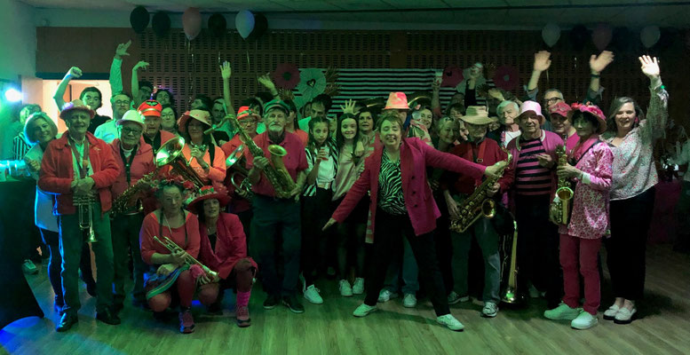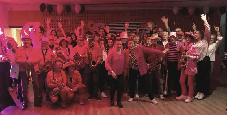 Une photo de la grande famille public/fanfarmonistes a clôturé notre prestation avant que Céline et ses invités poursuivent leur super soirée.
