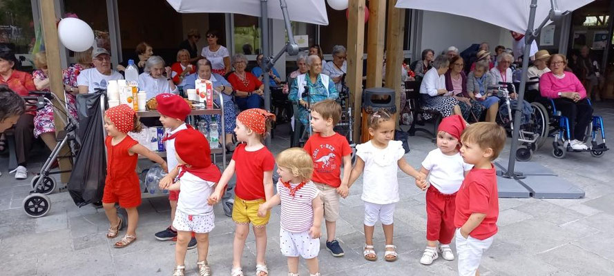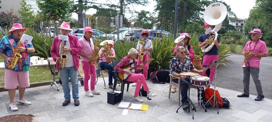 Sous les auvents ombragés de l'établissement les résidents ont pu admirer, face à eux, l'élégance des fanfarmonistes et écouter un répertoire adapté pour réveiller leurs meilleurs souvenirs.