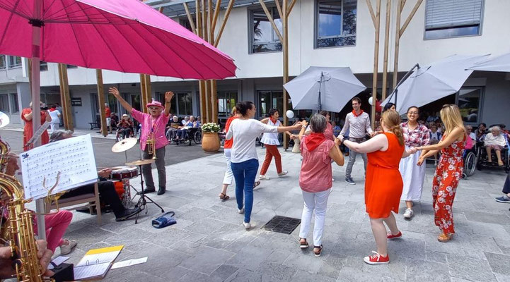 Une belle météo, un accueil chaleureux du personnel, une grande attention, et aussi participation, des résidents - sans parler de l'immense talent tout en modestie de la Fanfarmonie - ont contribué à créer une ambiance festive qui semble avoir été appréciée de tous.