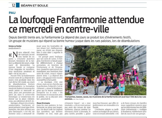 Ainsi le 6 septembre les rues de Pau ont résonné d'une musique que l'on peut qualifier, sans complexe de fanfaronnade, d'une qualité frôlant la perfection (en faisant toutefois tout pour ne pas l'atteindre)