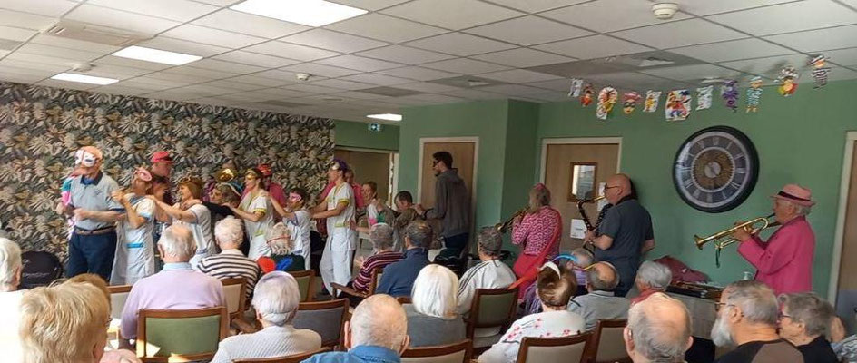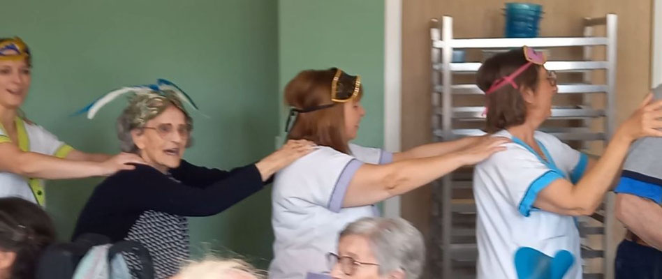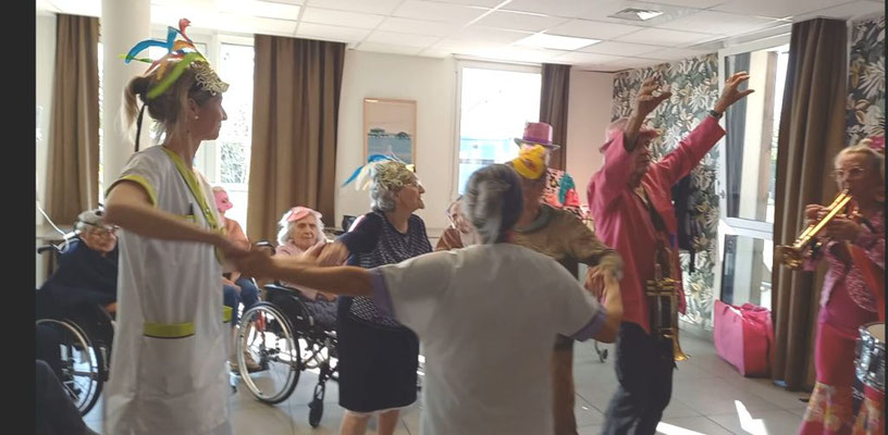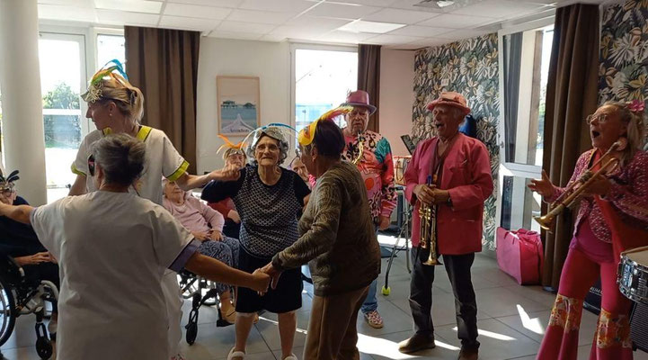 Sur le thème du carnaval la Fanfarmonie a contribué à une animation lors d'un après midi et a put susciter la participation, certes des équipes d'encadrement, et aussi de résidents.