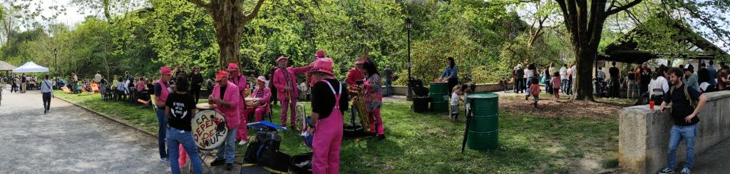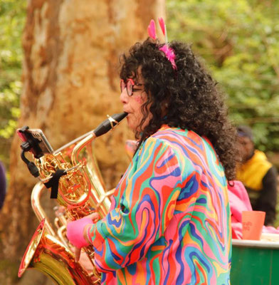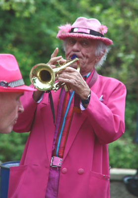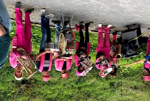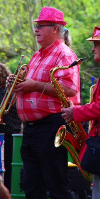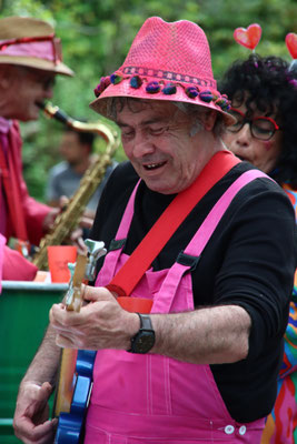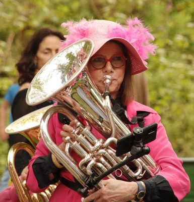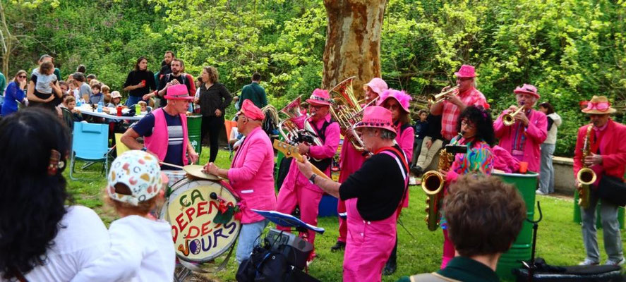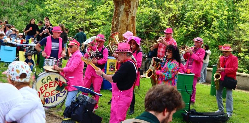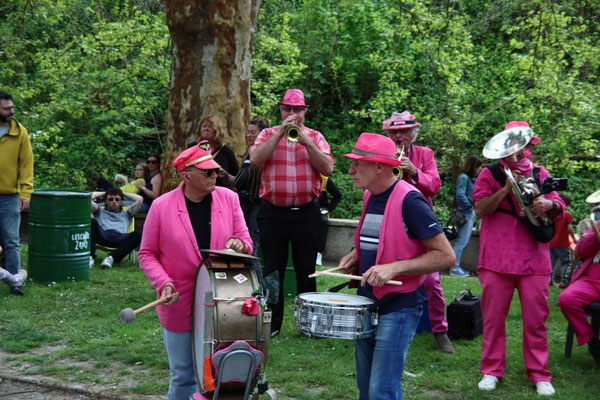 Les fanfarmonistes avec leurs "roses Emmaüs" tellement captivants qu'ils pourraient se passer de jouer ...