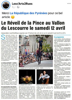 Lescar vallon du Lescourre - festival Lesc'Arts2rues - samedi 12 avril 2025